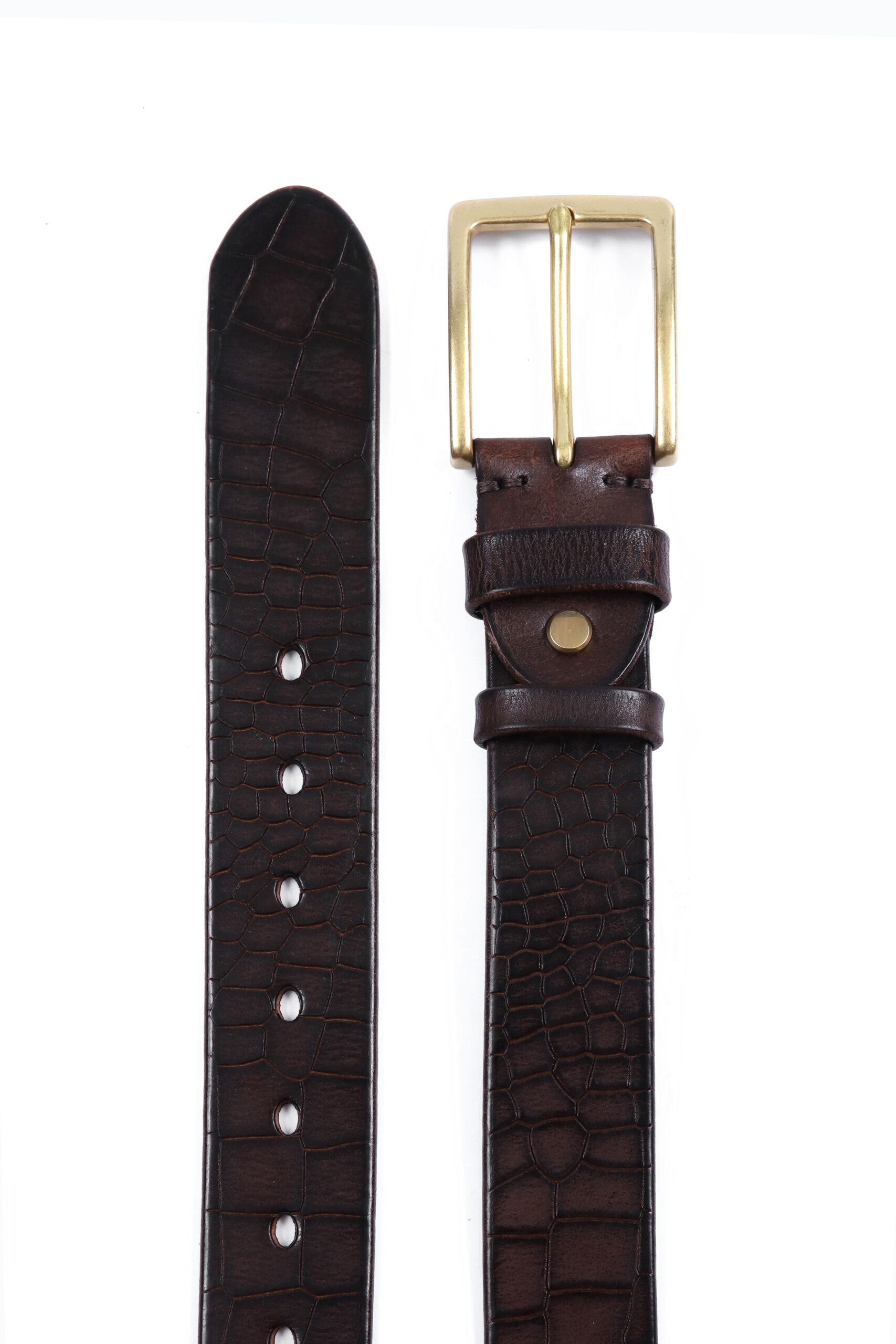 Elevate your style with our Elegatore Scale Leather Belt, crafted to embody sophistication and modernity. Featuring a stunning scale pattern that mimics the elegance of exotic textures, this belt adds a unique flair to any outfit. Made from high-quality leather, it combines durability with a luxurious finish. The sleek buckle complements the intricate design, making it perfect for both formal occasions and upscale casual wear. Stand out with this statement piece that redefines elegance in your wardrobe.