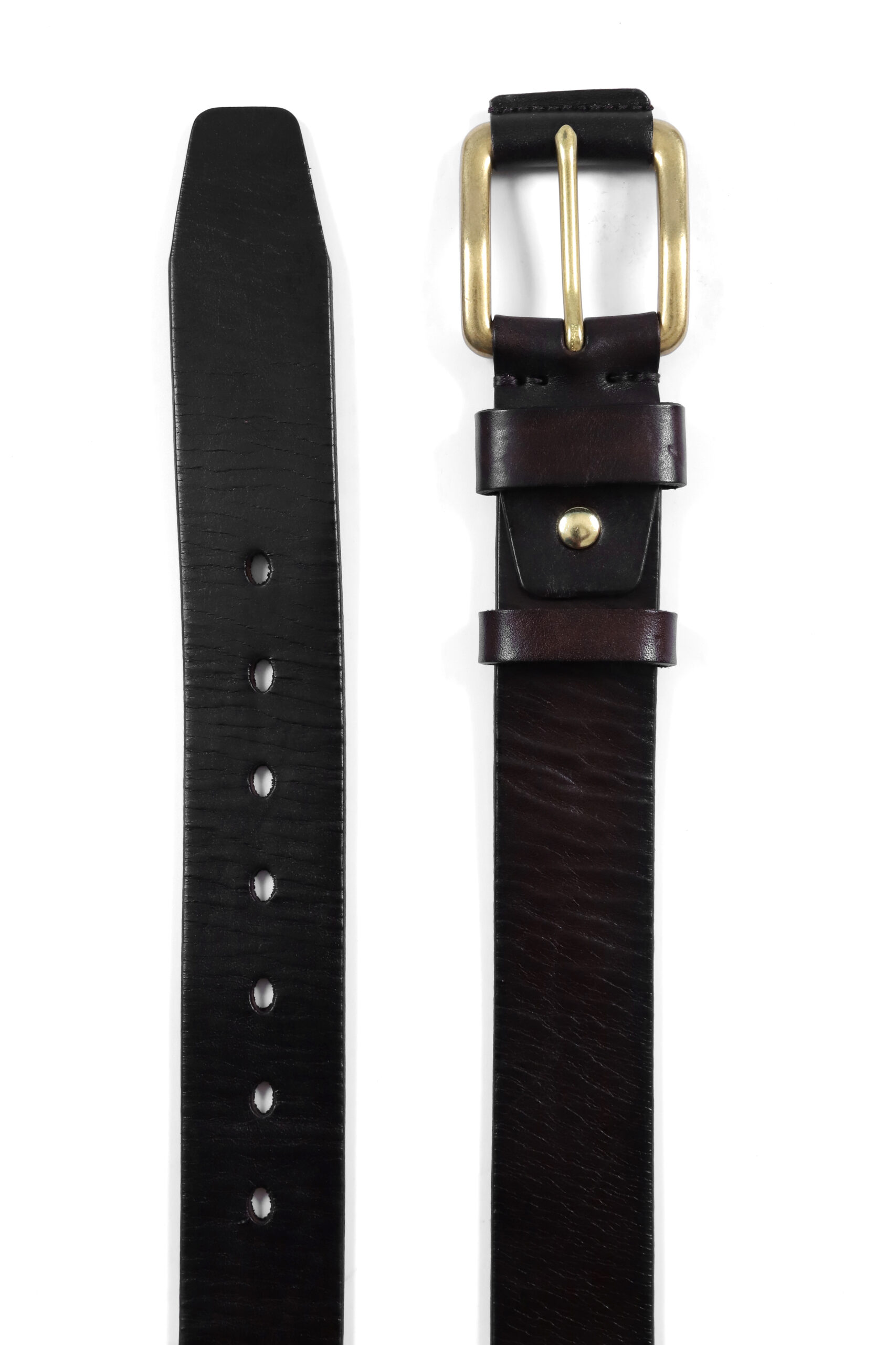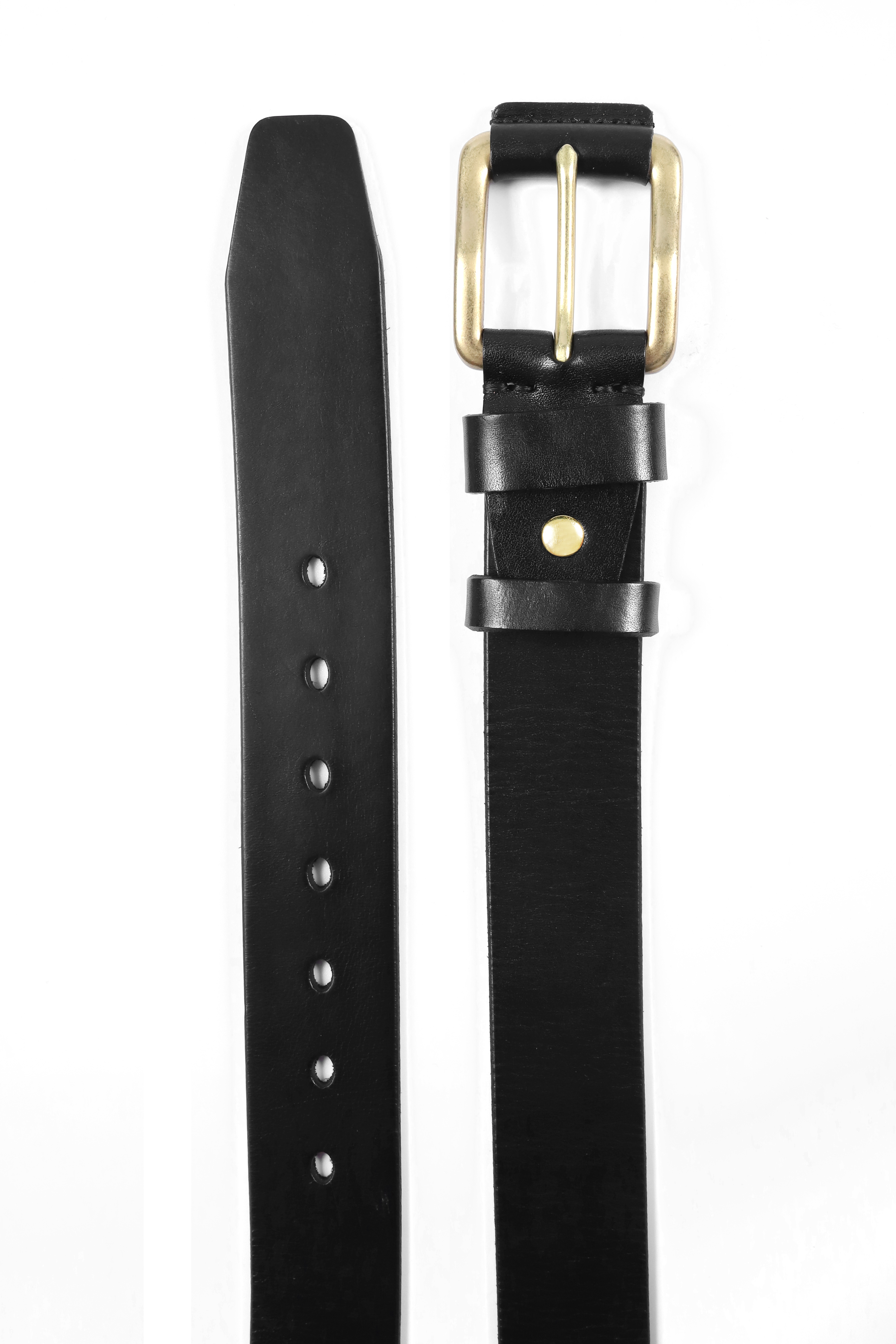 Introducing our premium black leather belt, designed to blend timeless style with modern craftsmanship. Crafted from high-quality, smooth leather, this belt exudes sophistication and durability, making it the perfect accessory for any occasion. The centre piece is a sleek, solid brass buckle with a polished finish, adding a touch of elegance and contrast to the rich leather. A brass rivet complements the buckle, while the dual leather loops keep everything perfectly in place. This belt is not just an accessory—it’s a statement of refined taste and enduring quality. Elevate your outfit effortlessly with this classic yet contemporary piece.
