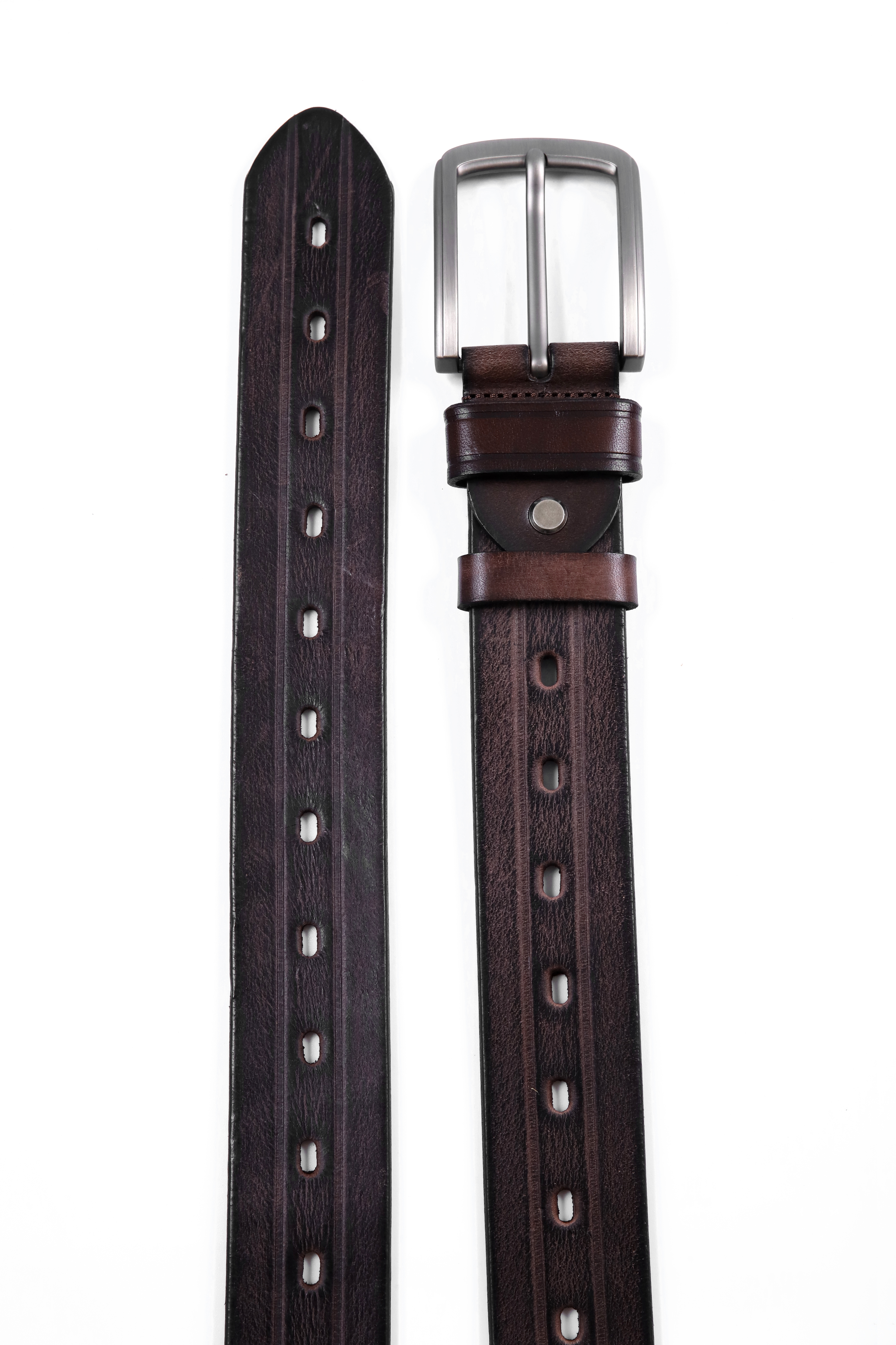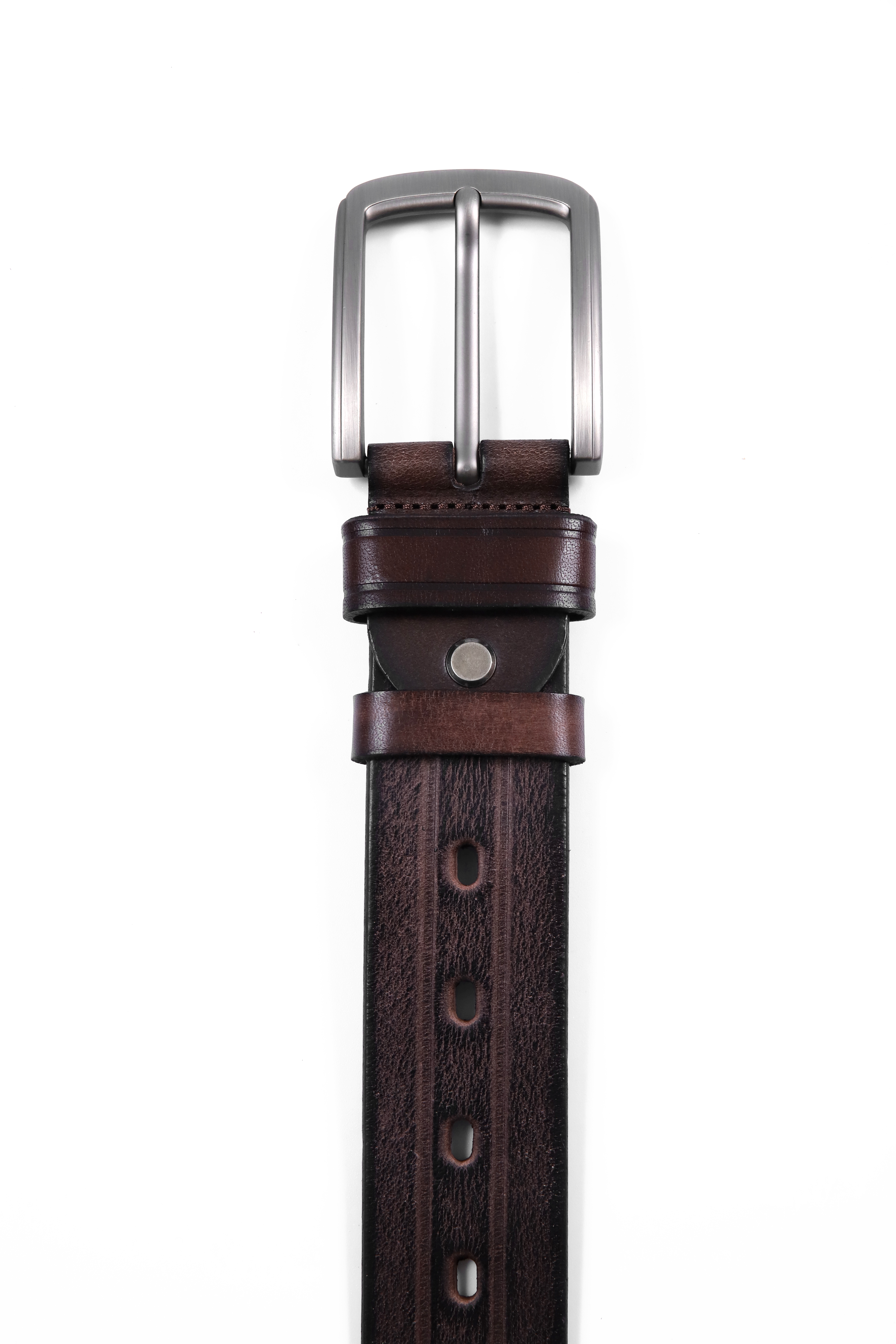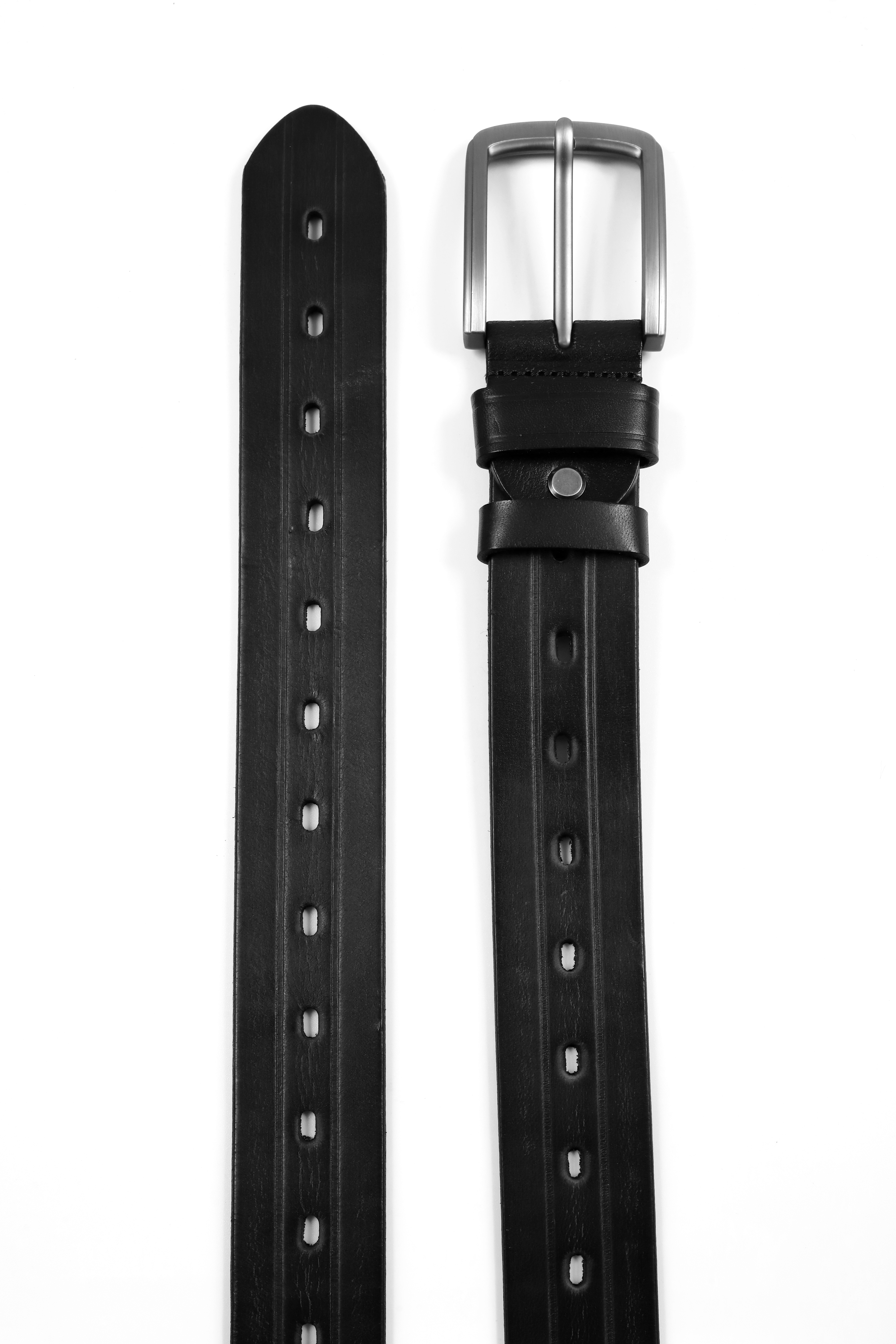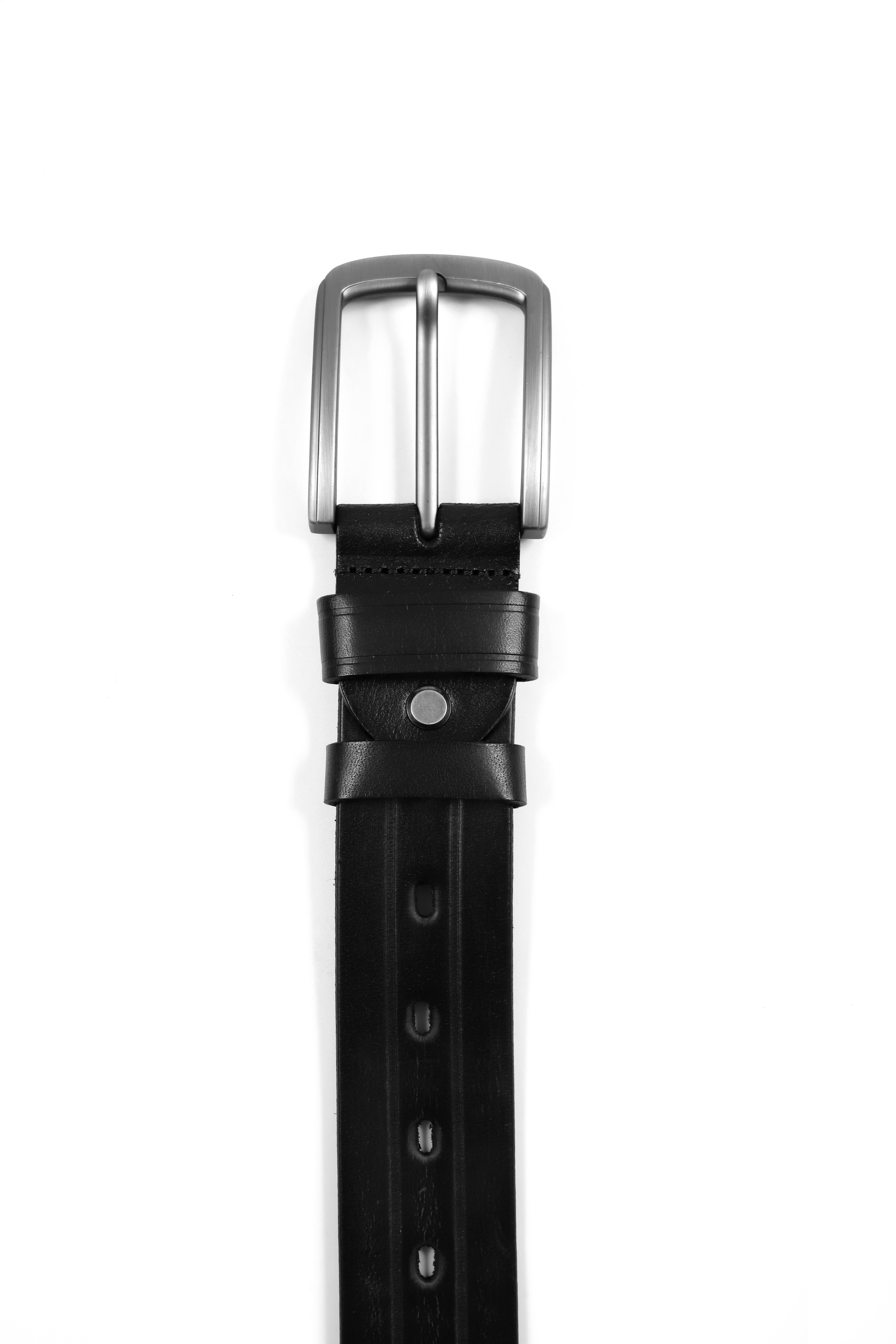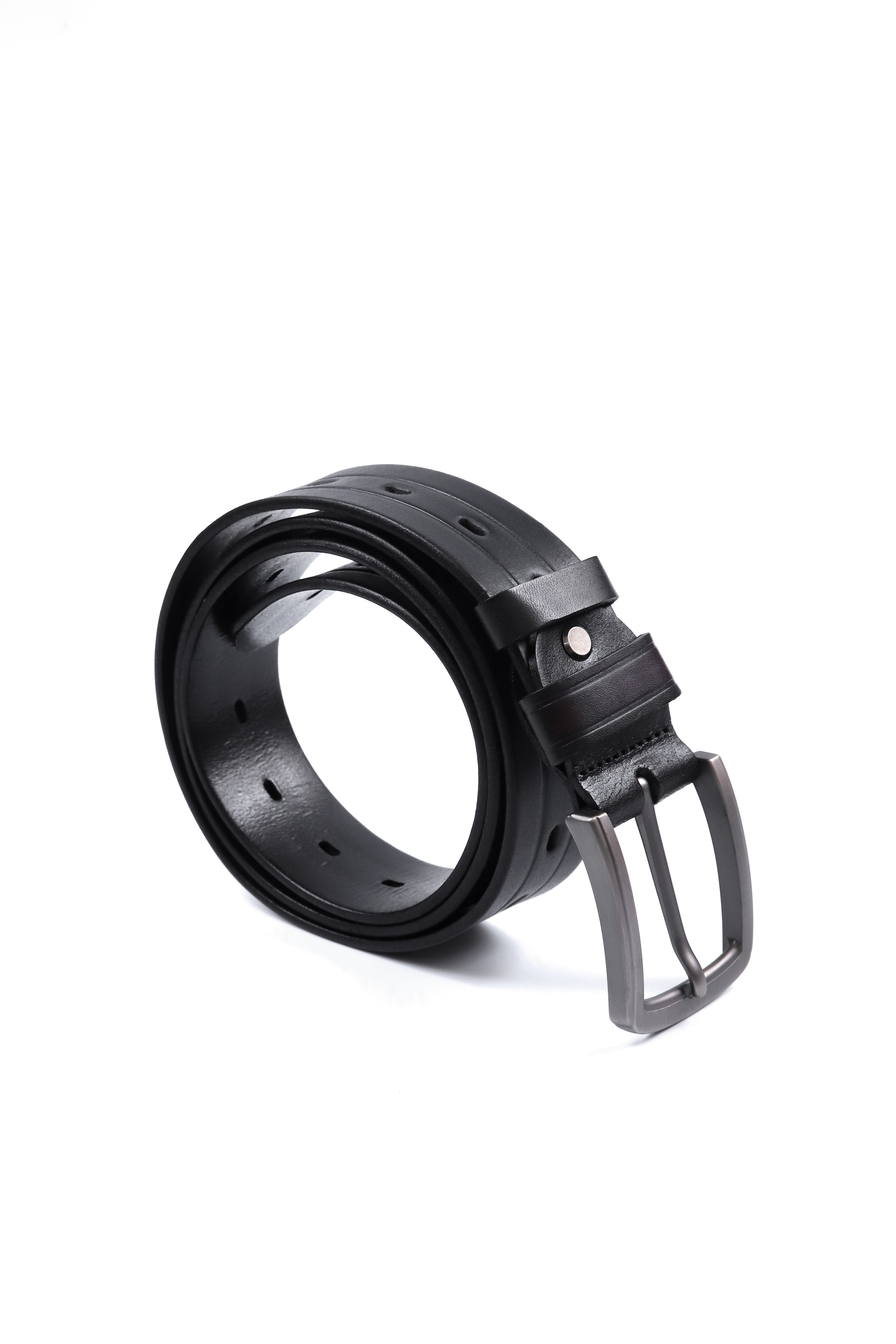 Elevate your everyday style with this versatile black leather belt, featuring a sleek brushed silver buckle that adds a contemporary edge to any outfit. The high-quality leather strap is designed with multiple adjustment holes, ensuring a perfect fit and ultimate comfort. The belt showcases fine stitching along its edges, enhancing its durability while giving it a refined finish. A subtle silver rivet adds a touch of sophistication, complementing the polished buckle. Whether you’re dressing up for a formal event or looking to add a stylish touch to your casual ensemble, this belt is the ideal accessory for those who appreciate quality and timeless design.