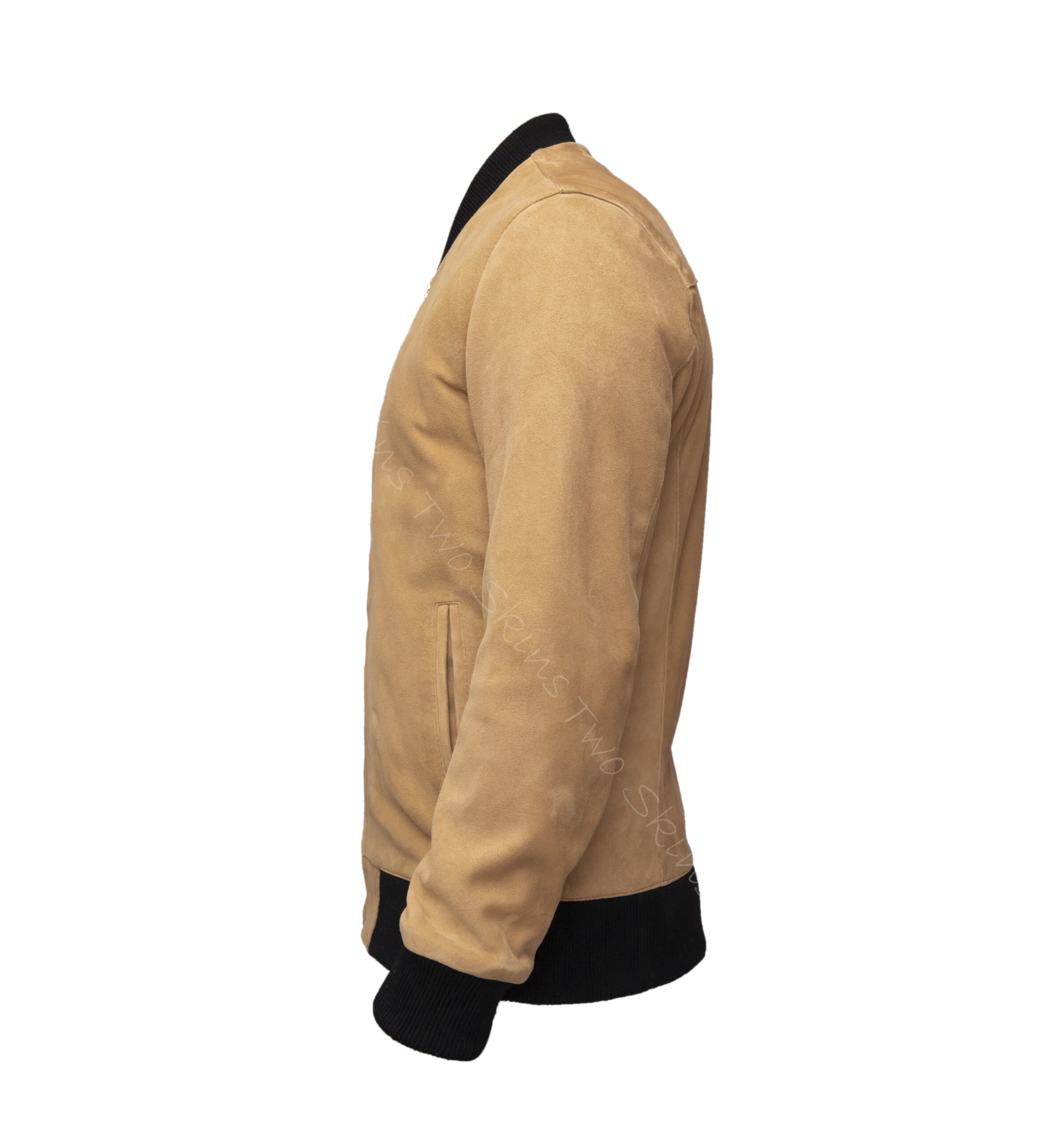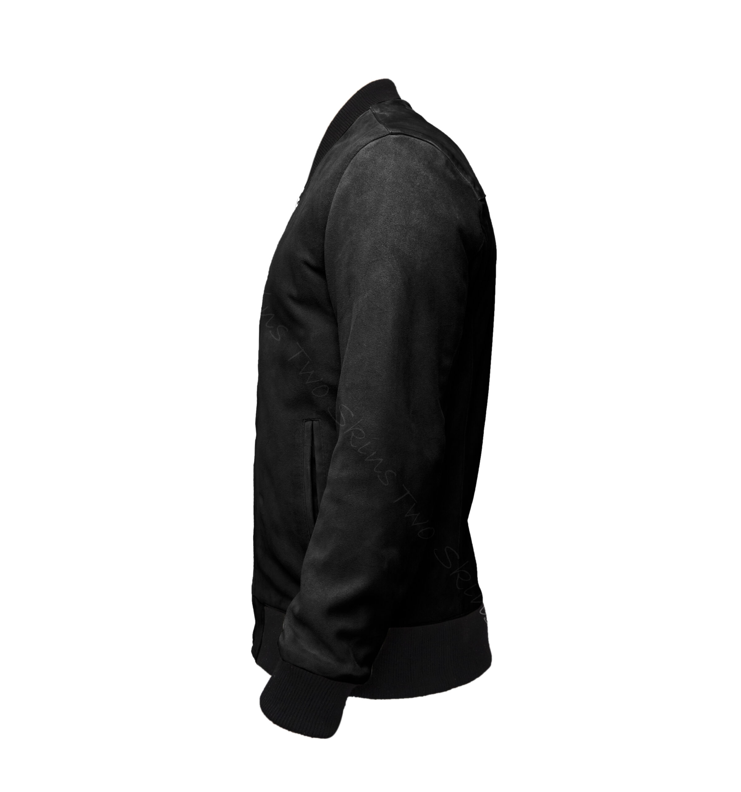 Minimalist detailing at its finest. This is the baseball suede Bomber Jacket. Crafted from soft GOAT suede leather with ribbed cuffs and hem.